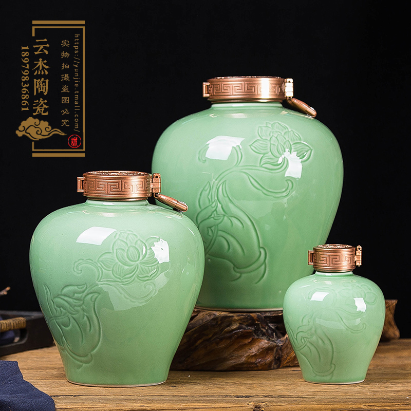 陶瓷空酒罐1斤5斤10斤雕刻青釉带锁扣白酒瓶